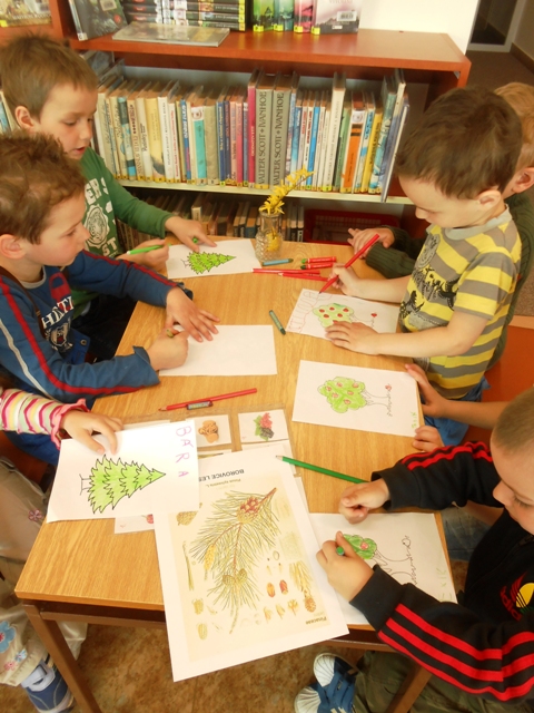 Ve středu 15. dubna opět navštívili knihovnu malí předškoláci z mateřské školky. Tentokrát jsme si povídali o stromech a keřích. Děti poznávaly stromy, plody a také si takový strom samy vymalovaly. Došlo i na zpěv a tanec - a jaká písnička? Jak jinak než písnička Stromy od Zdeňka Svěráka a Jaroslava Uhlíře. Děti mě velmi překvapily, protože tuto písničku znají celou zpaměti! A jelikož k dětem patří hlavně hraní - došlo nakonec i na naši herničku.